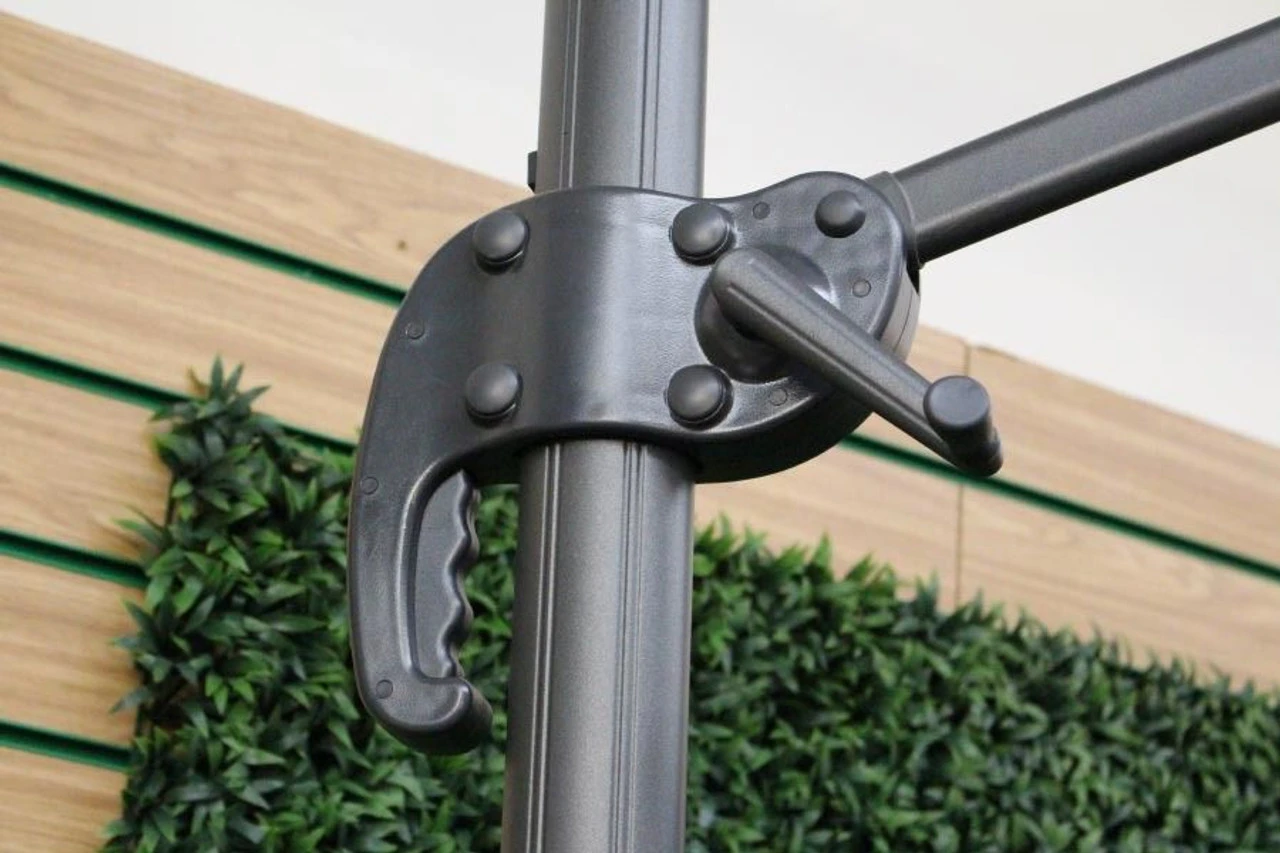 The Alexander Rose UH30 is a 18 spoke curved 3.0m cantilever parasol. As with the UHP it is easy to raise and lower the canopy with a crank handle mechanism. The canopy can be adjusted into 7 positions to give maximum shade from the sun. The parasol also has a foot operated pedal for 360º rotation. For use with the