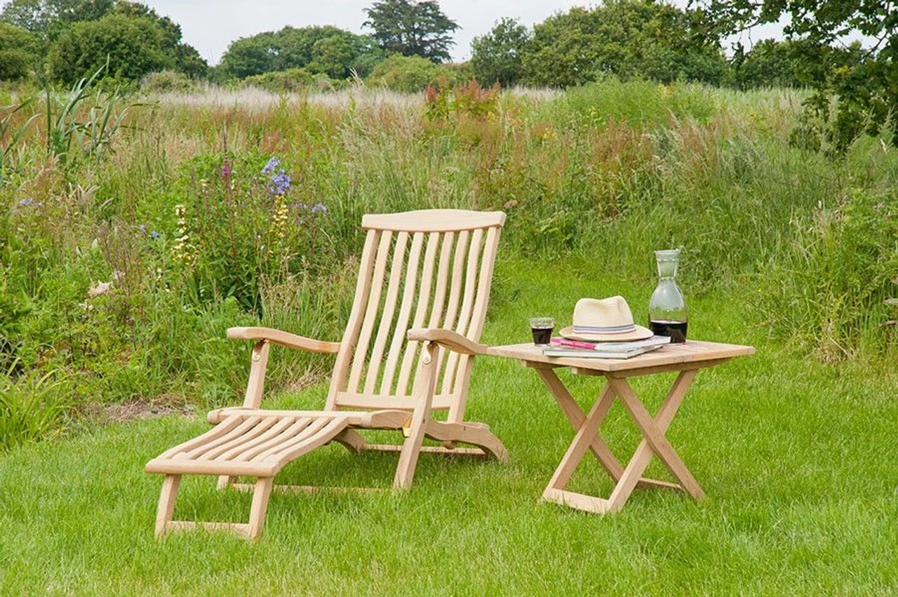 The Alexander Rose Roble Garden Steamer Chair is a beautiful, casual-looking smooth Durable Bolivian hardwood, easy transported Alexander Rose steamer chair. Perfect for sunny days. The Alexander Rose Steamer Chair is adjustable into 4 positions with a reclining back and shaped back slats for comfort.
