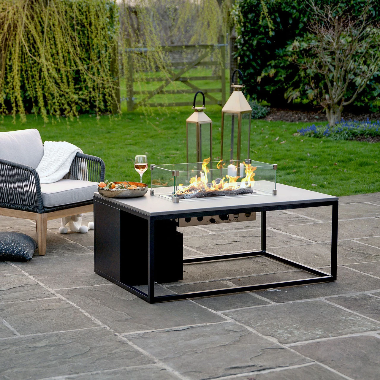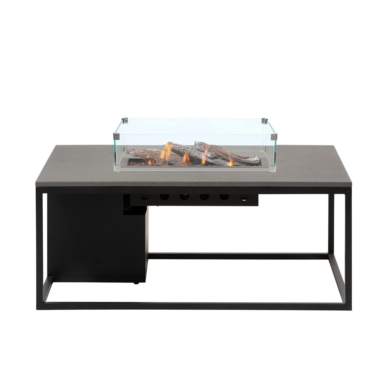 Finished in a concrete effect top and black metal frame, the Cosiloft Rectangle Coffee Table takes up 5KG gas canister (not supplied) and creates a great focal point for your outdoor lounging area.Â