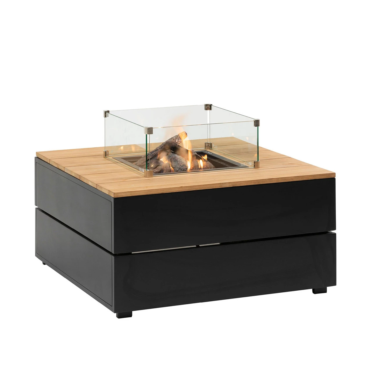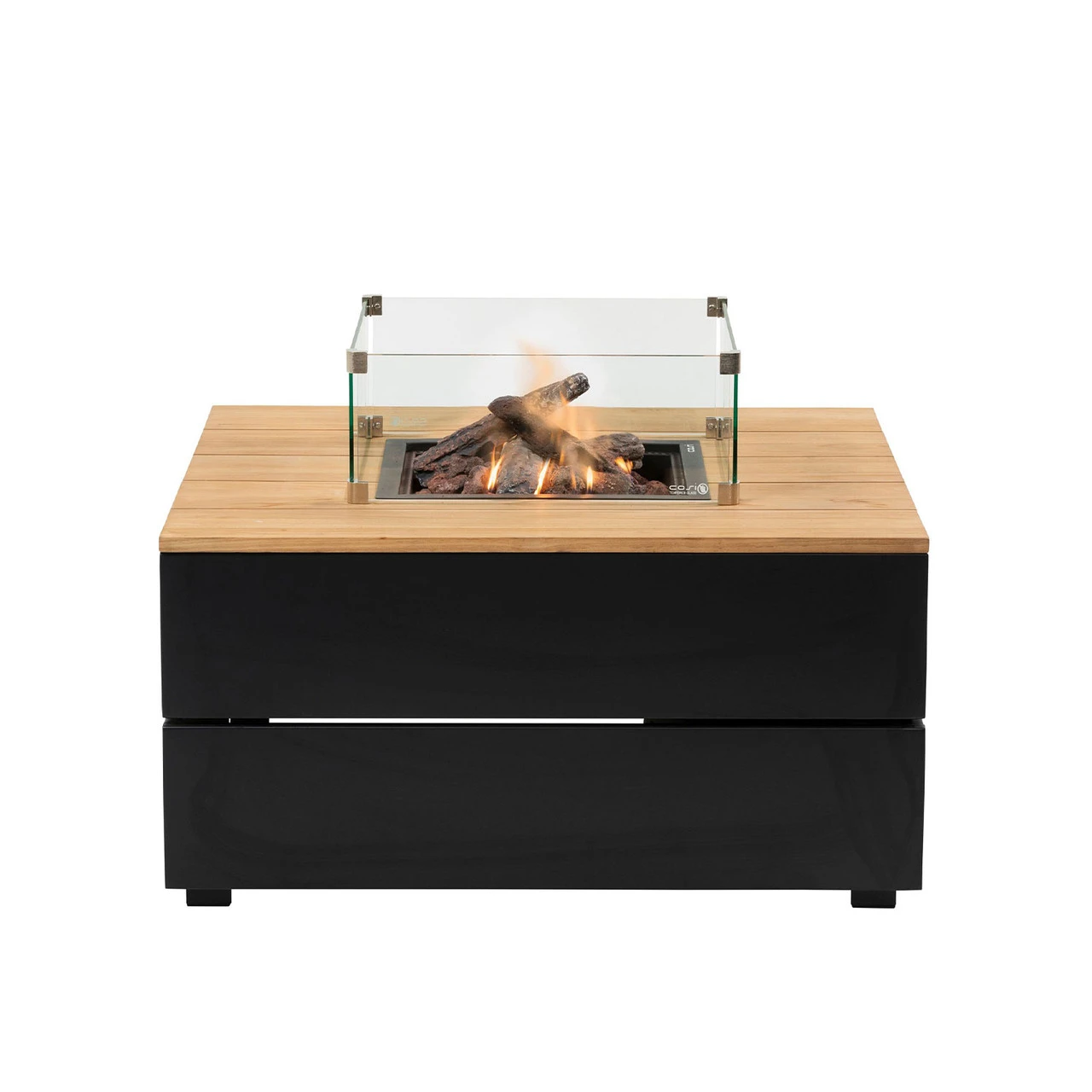 Cosipure 100 Square Fire Pit Black and Teak With GlassÂ